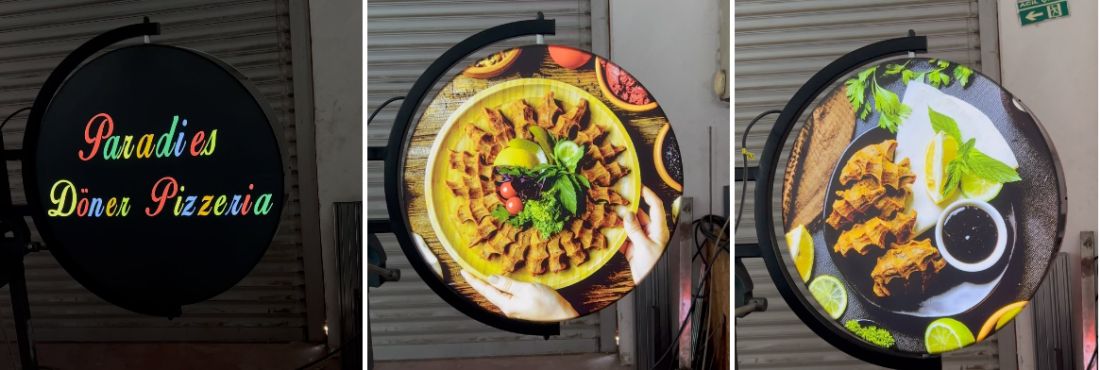 Dönen Tabela firması olarak, işletmelerin dikkat çekici ve estetik tanıtım ihtiyaçlarına yönelik yüksek kaliteli tabela çözümleri sunuyoruz. Başta Dönen Tabela sistemleri olmak üzere; Yuvarlak Dönen, Kare Dönen, Dikdörtgen Dönen ve İç Mekan Tavana Askılı Dönen modellerimizle farklı kullanım alanlarına özel çözümler üretiyoruz. Tabelalarımız; sessiz ve dayanıklı motor sistemleri, dış hava koşullarına uygun malzeme kalitesi ve modern tasarımıyla öne çıkar.